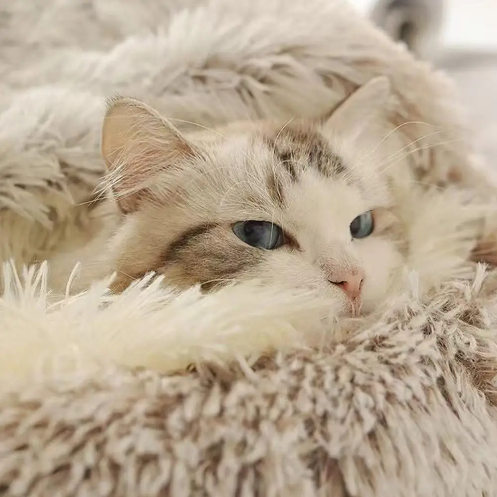 This winter plush round cat bed provides warmth and comfort for pets. Made with soft plush material to create a cozy sleeping surface. The round design helps pets feel secure while resting. It functions as both a pet bed and a sleeping bag nest. Ideal for cats and small dogs during colder seasons. Thick cushioning supports comfortable naps and deep sleep. The warm fabric helps retain heat for added comfort. Lightweight design allows easy placement around the home. Suitable for bedrooms, living rooms, or pet corners. This plush pet bed offers a soft and relaxing space for everyday rest.